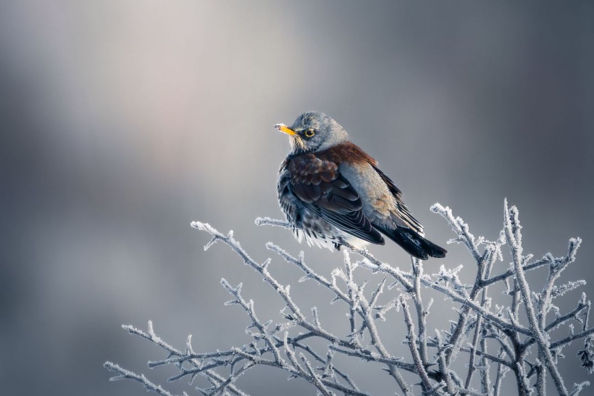 Mijn eerste goede waarneming van een Kramsvogel. Langs het meer staan kleine boompjes met nog bessen er in waar de kramsvogels op afkwamen.