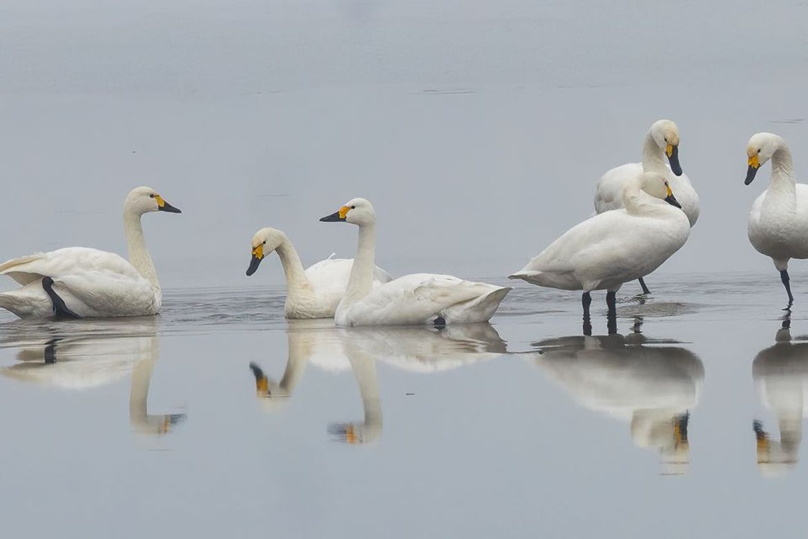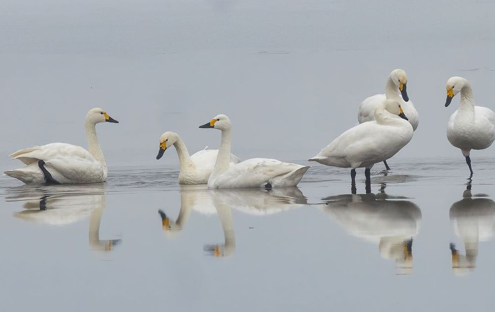 In het Vossemeer in deze tijd veel wintergasten. Ook zat er dagenlang een groepje kleine zwanen. Hier zaten ze te poetsen op het ijs.