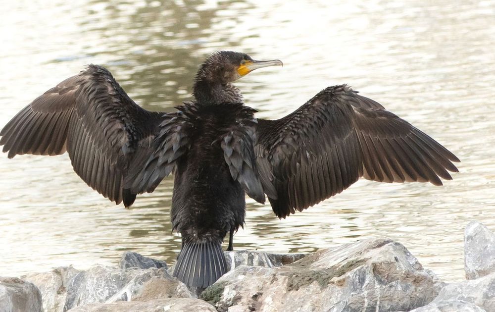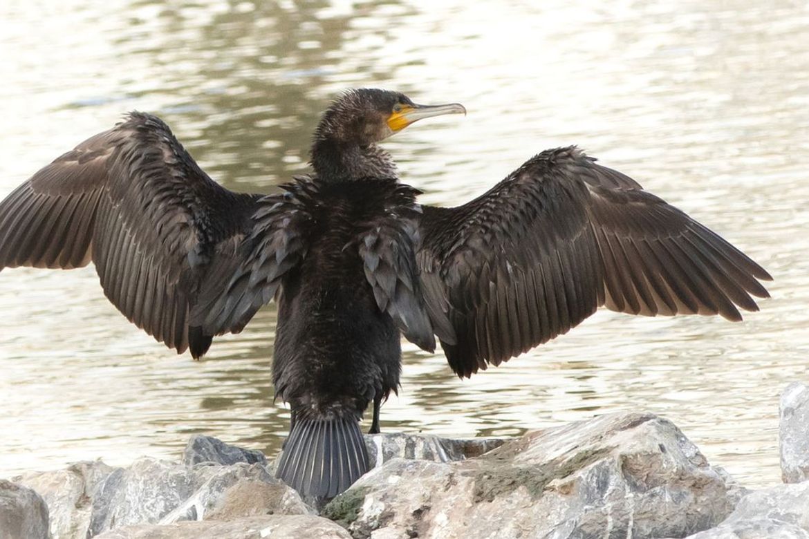 Ik was deze aalscholver een poosje aan het "volgen". Na diverse visloze duiken probeerde hij/zij het verenkleed te drogen in een matig winters zonnetje.
