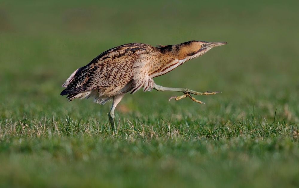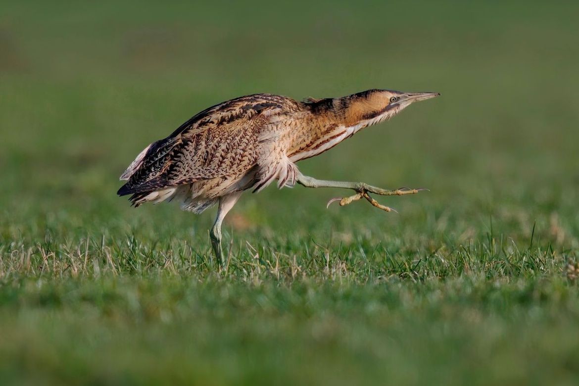 Als deze Roerdomp ging lopen leek het wel een soldaat die wacht liep. Het zag er in ieder geval elegant en hoffelijk uit in de polder.