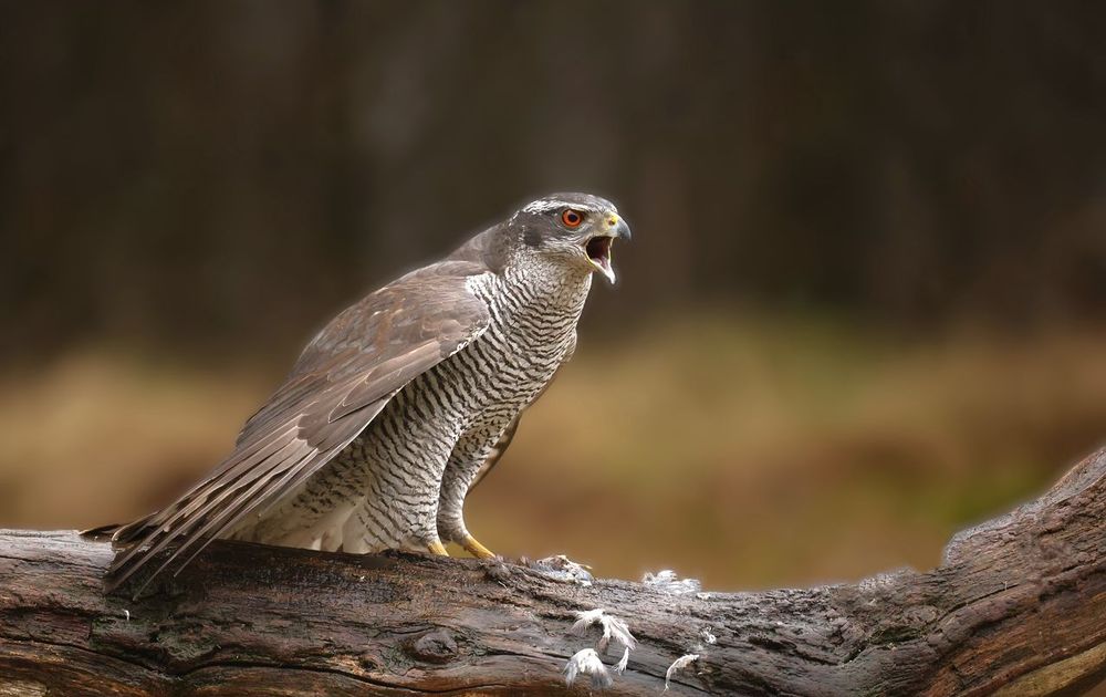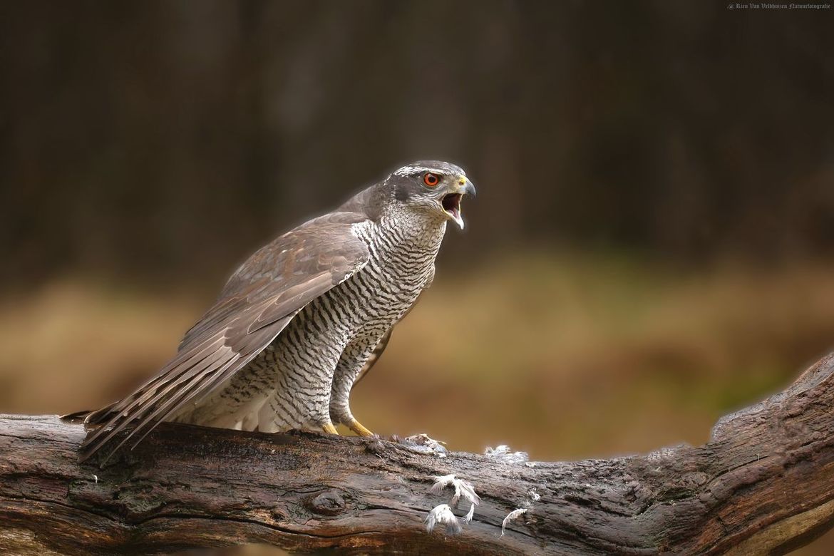 Net zijn prooi gevangen en verdedigt zijn prooi tegen een andere Havik