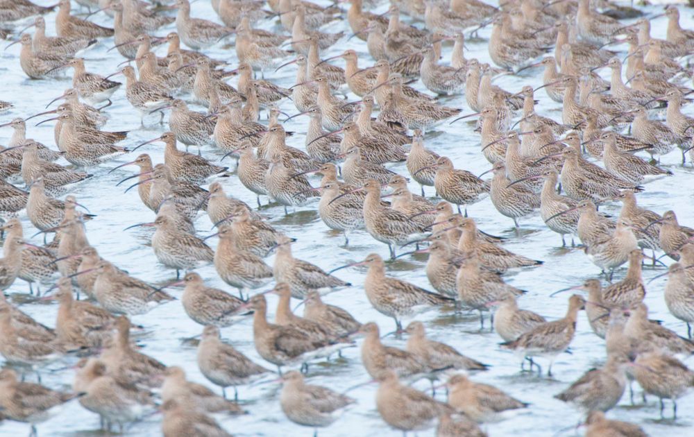 Als een leger van grijsbruine soldaten met gebogen sabel staan honderden wulpen in gelid. Fotograaf Nico van Kappel uit Zuidland legde het beeld vast toen hij met zijn gezin een paar dagen met vakantie was op Texel. Een toevalstreffer? Niet helemaal. Van Kappel: “Ik wist dat het midden op de dag hoogwater was en daarom reden we langs de wadzijde van het eiland om te kijken wat er allemaal te zien zou zijn. Bij de inlagen van het natuurgebied Ottersaat schuilden heel veel vogels bijeen op de hoogwatervluchtplaats. Niet alleen wulpen, maar ook scholeksters, rosse grutto’s, steenlopers, groenpootruiter en rotganzen. Vanuit de auto maak je dan de mooiste plaatjes, zonder dat de hele boel van schrik de lucht ingaat.”