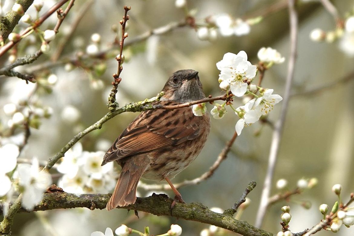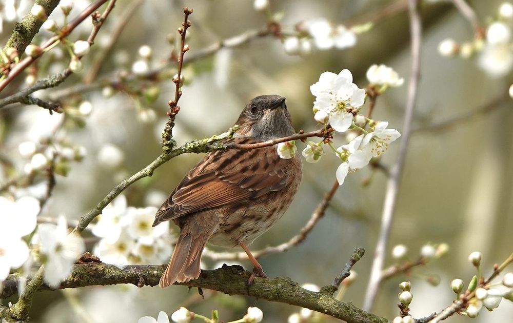 Heggenmus tussen de pruimenbloesem!