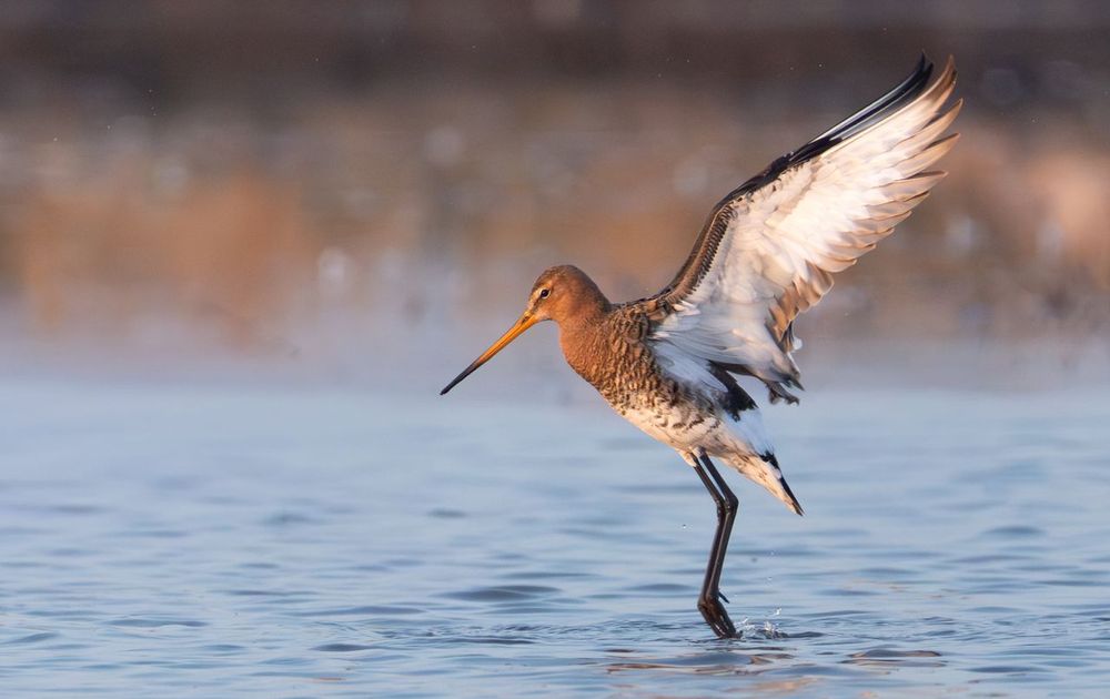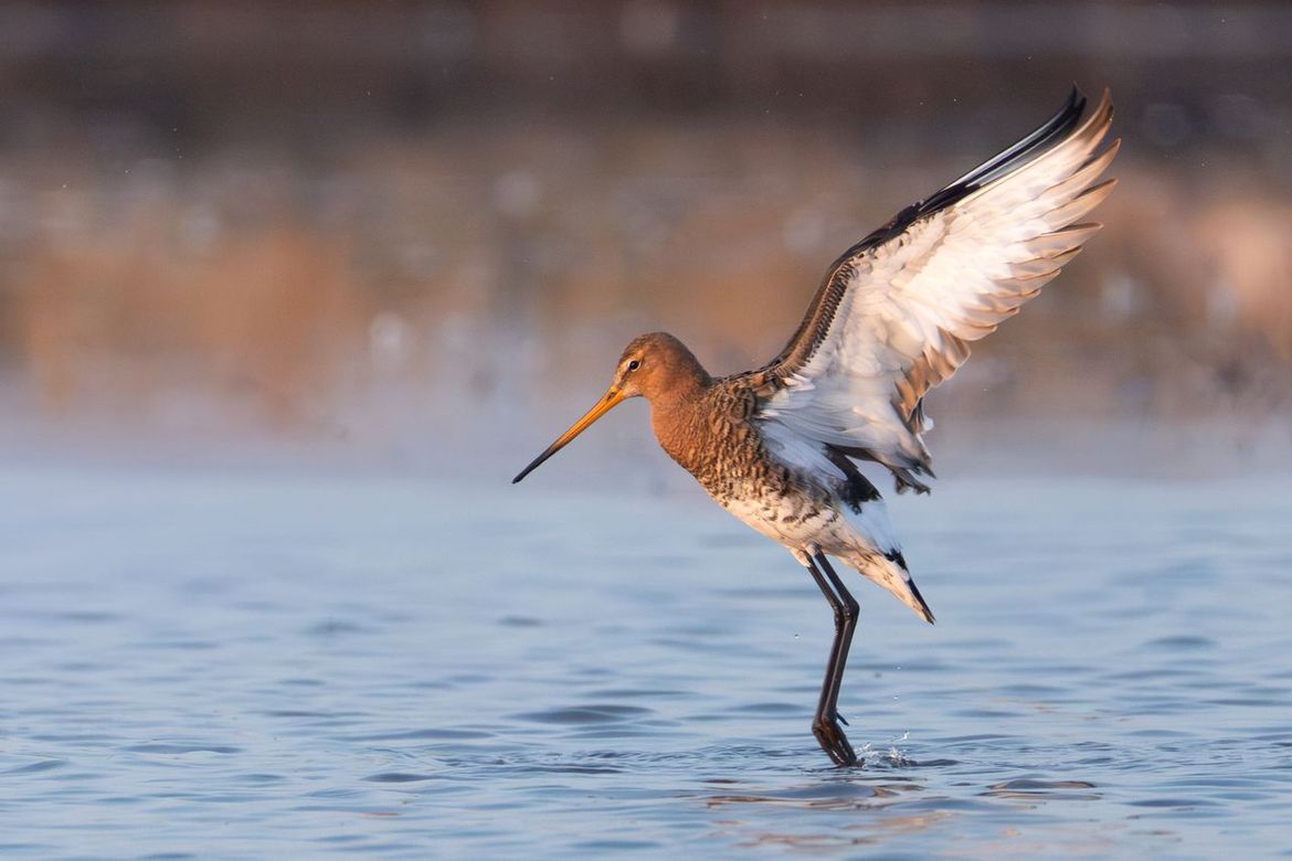 Op een prachtige zondagochtend in de Polder Arkemheen. Deze grutto schudde zijn vleugels uit na het badderen. Het ochtendlicht maakte het plaatje compleet.