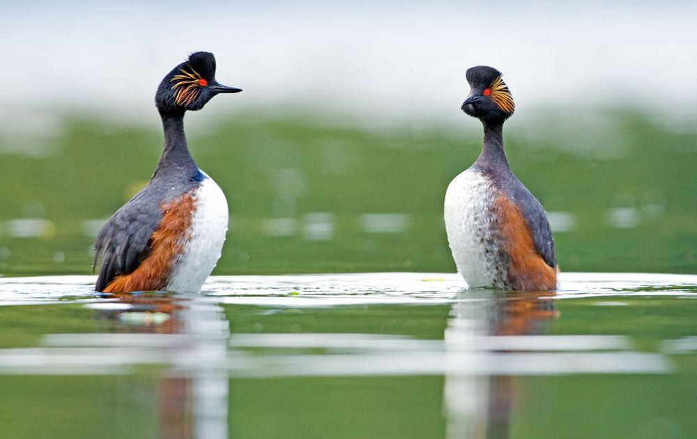 Wie kent niet het gracieuze baltsgedrag van de fuut? Al is het maar van de foto. Maar hoe zit dat met de geoorde fuut? De soort is veel minder algemeen en minder opvallend. Geoorde futen zijn meer bedachtzame vogels, die op hun rust gesteld zijn en de kat uit de boom kijken. Behalve in het voorjaar als de hormonen door het lijf gieren. Tijdens de balts hebben de vogels enkel oog voor elkaar en vergeten alles om zich heen. Dat ervaarde ook natuurfotograaf Jeroen Stel tijdens een fotoworkshop die hij aan een groepje cursisten gaf. “We lagen met acht man aan de kant van het water te wachten. De plek was zorgvuldig gekozen, want ik wist dat zich hier meerdere paren ophielden. Inderdaad voerden enkele vogels er hun indrukwekkende baltsritueel op. Maar voor ons fotografen op veel te grote afstand. Soms zwommen ze wel wat dichterbij, maar over het algemeen hielden ze eerbiedig afstand. Totdat... Eén paartje naderde ons tot op ongeveer acht meter en voerde daar hun paringsdans op. Vlak voor onze neus, terwijl wij open en bloot aan de waterkant lagen.