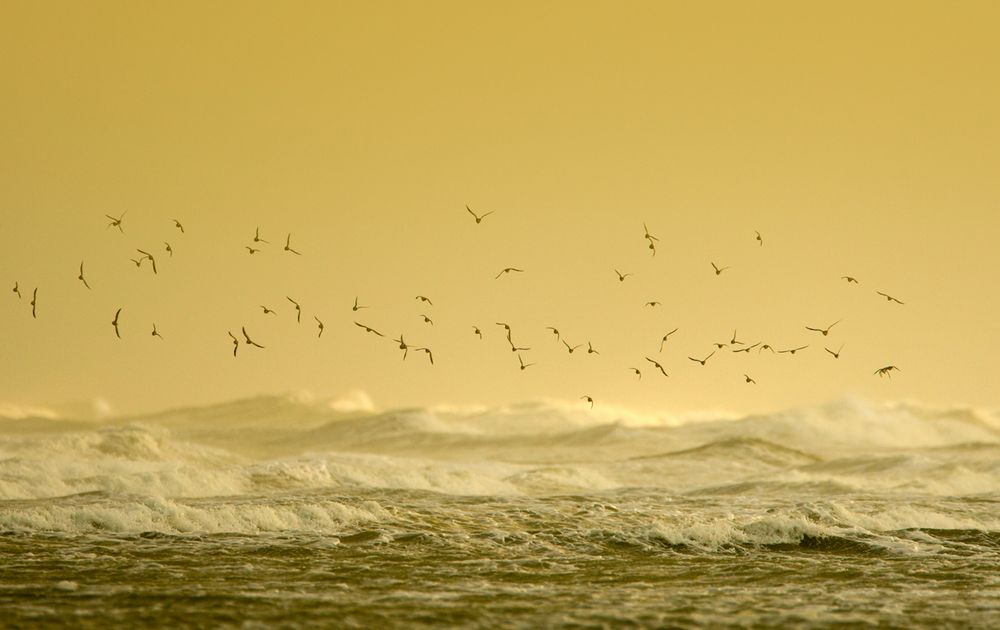 Toch besloot ze enkele jaren geleden met een groep natuurfotografen naar Terschelling te gaan. In de vroege ochtend was ze met enkele enthousiastelingen al voor dag en dauw op pad. Het waaide hard, er stonden hoge golven en het opstuivende zand zandstraalde apparatuur en fotografen. Pauline herinnert zich: “Het licht was prachtig dankzij de zonsopkomst en er vloog een hele grote groep bonte strandlopers. De eerste keer dat ik ze fotografeerde.”