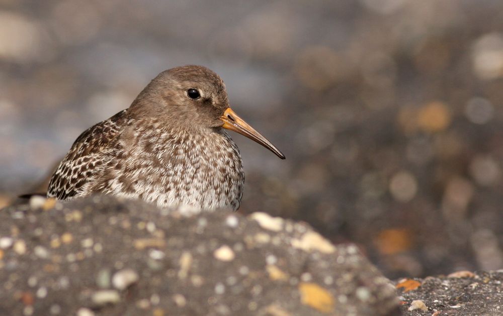 Tussen de basaltblokken vallen ze bijna niet op de paarse strandlopers....perfecte schutkleur.