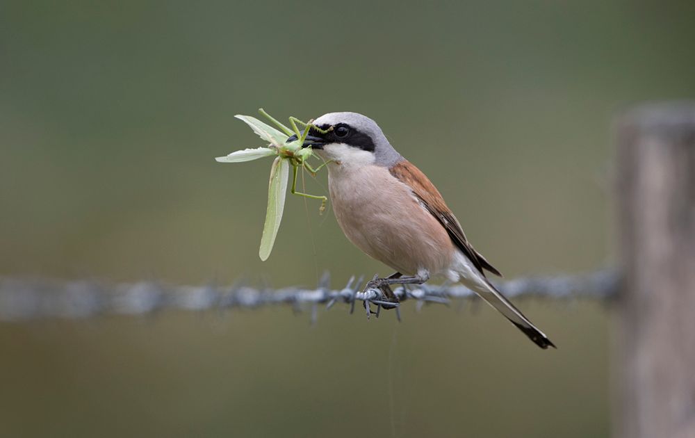 Deze vond ik leuk vanwege de prooi, een Grote groene sabelsprinkhaan en omdat ik het meeste prikkeldraad uit focus kon houden.