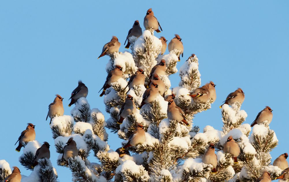 Grote groepen pestvogels komen elke winter in Noord-Finland bijeen om zich tegoed te doen aan de rijkelijk aanwezige vruchten van de lijsterbes. Ontelbare trossen oranje bessen sieren er de bomen. Natuurfotograaf Markus Varesvuo reisde ervoor naar Kuusamo, dicht bij de Russische grens. Hij verbleef er twee maanden en elke dag zocht hij de sierlijke, kleurrijke vogels op. “Het voordeel van pestvogels is dat ze niet schuw zijn. Als je ze rustig benadert blijven ze gewoon zitten. Soms vliegt een hele groep op, om vervolgens even neer te strijken in een den. Met mijn grote telelens op statief kon ik voldoende afstand houden om ze van alle kanten te fotograferen. Zolang er bessen zijn blijven de pestvogels in Kuusamo. Februari is de beste tijd om ze te fotograferen. De dagen zijn kort en het licht is mooi diffuus. Door de reflectie van de sneeuw lichten de vogels wat extra op.” Markus rept niet over de barre winterse omstandigheden met temperaturen tot min 18 graden Celsius. Eigenlijk is het best vaak afzien, maar dan heb je ook wat. Uit de rubriek Raak van het tijdschrift Vogels winter 05/2017