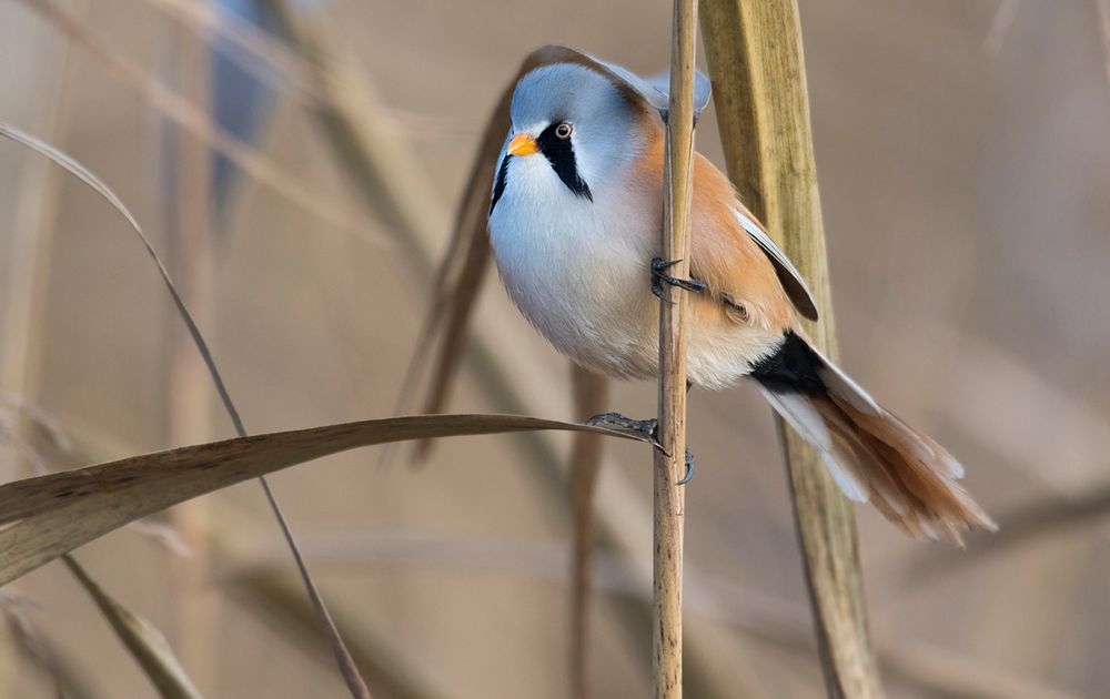 Dit Baardmannetje was even aan het schuilen onder het blad van een rietstengel. Ik vond het wel een grappige foto.