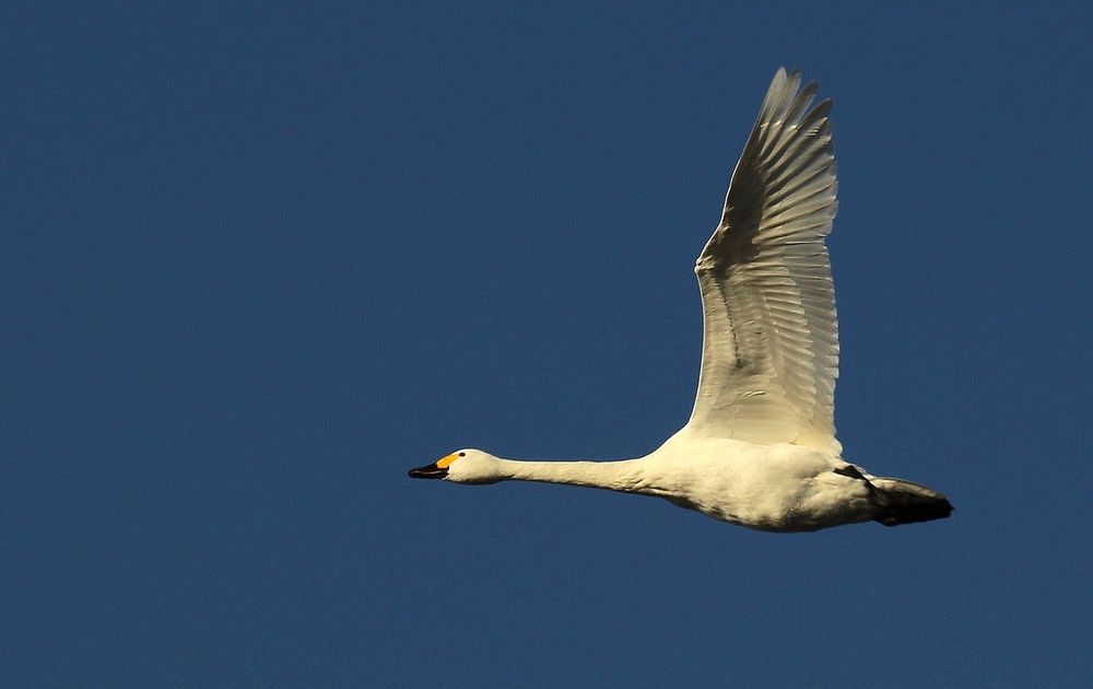 Ze zijn er weer de kleine zwanen. Gefotografeerd boven het Veluwemeer bij Elburg.