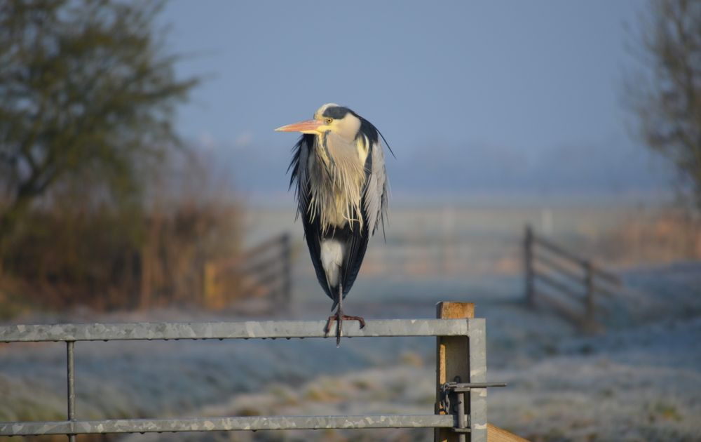 Ik liep 's ochtends met de hond en zag deze reiger op het hek zitten. Ik werd getroffen door wat ik zag en heb er een fotoserie van gemaakt, waar deze foto een van is.