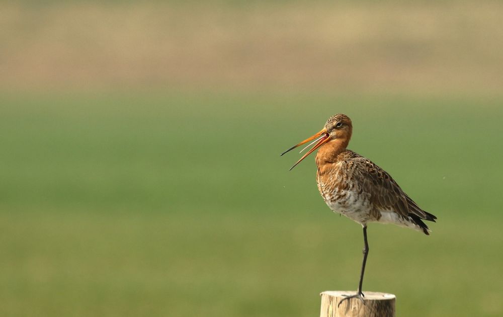 De Grutto stond mooi op een paal en stak de tong uit.