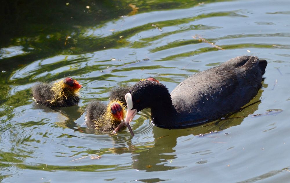 Gezellig zwemmen in de sloot, maar gevaar zien ze niet. De reiger verder op en de snoek onder op.
