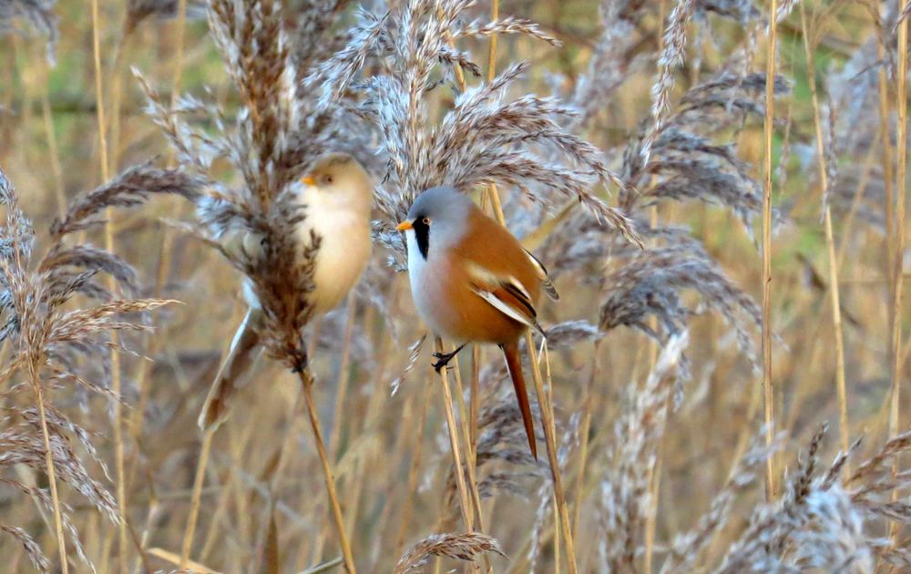 Voor het eerst baardmannetjes gezien en ze poseerden prachtig. Baalde er eerst van dat het vrouwtje niet geheel scherp op de foto staat maar het effect is zo veel mooier. Bijna of ze zich op de achtergrond houdt om het mannetje in al zijn pracht mooi tot zijn recht te laten komen.