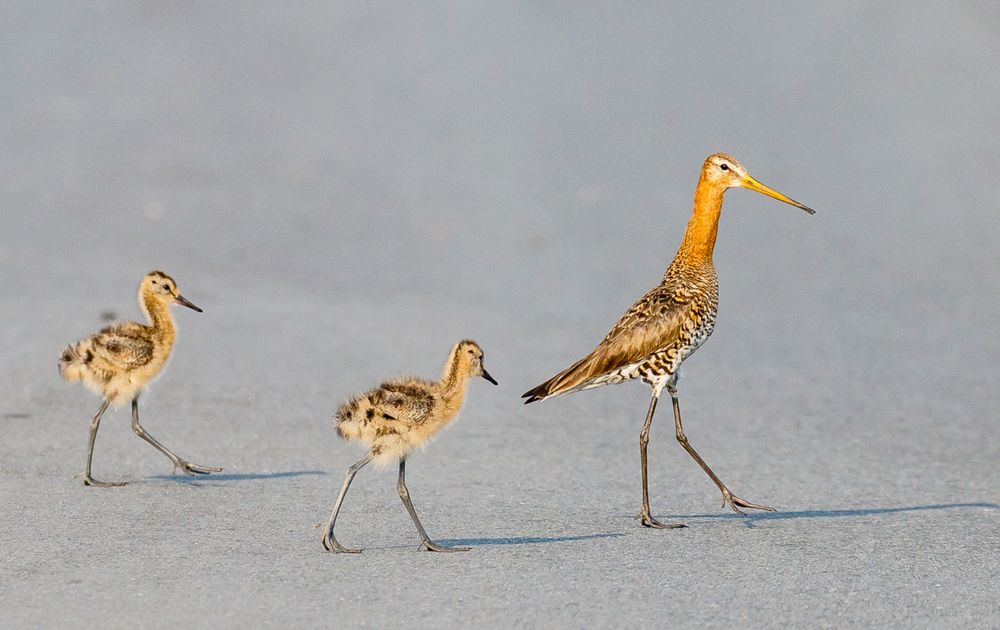 Wat een geluksmoment! Maar liefst 3 grutto kuikens lopen in de verte door het gras. Op ruime afstand de auto in de berm gereden en mij verstopt onder de auto. Na wachten en geduld komen de drie recht op me af onder het wakend oog van hun ouders. Goed verstopt zien de volwassen grutto's mij nauwelijks als bedreiging voor hun kuikens, waardoor ik de kans krijg om een paar fijne plaatjes te schieten!🙂