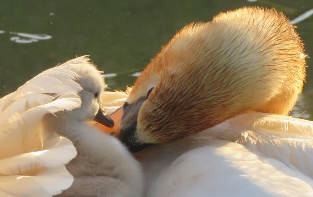 In de verbrede sloot voor mijn huis speelde dit zich af. Er zit al jaren een zwanenpaar, maar ik had ze dit jaar heel mag niet gezien. Tot ik een keer ging kijken en eet och een nest in het water dreef met een broedende ouder. Toen ben ik iedere dag maar even gaan kijken of er al gezinsuitbreiding was. En dar was er ...drie stuks is het laatste wat ik heb gezien. Sinds vorige week zijn ze vertrokken ... althans ik heb ze nog nie5 weer gezien.