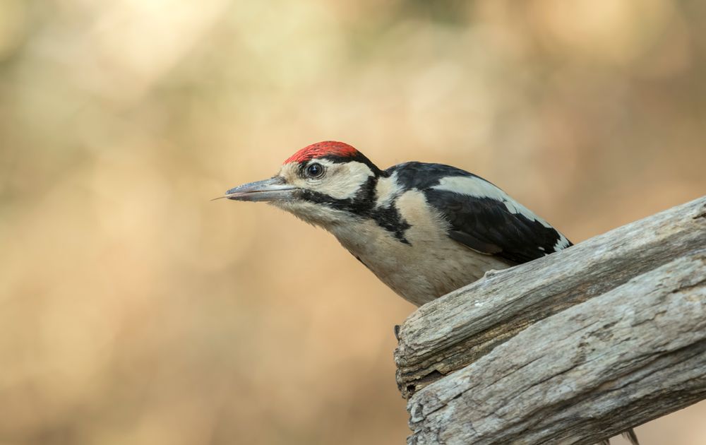 Grote Bonte Specht die net zijn tong uitsteekt, terwijl ik klik.
