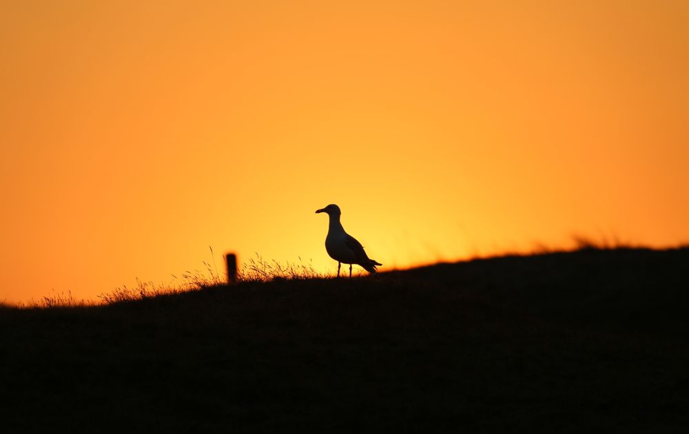 Deze Zilvermeeuw stond mooi op de uitkijk in de Texelse Duinen tijdens de ondergaande zon.