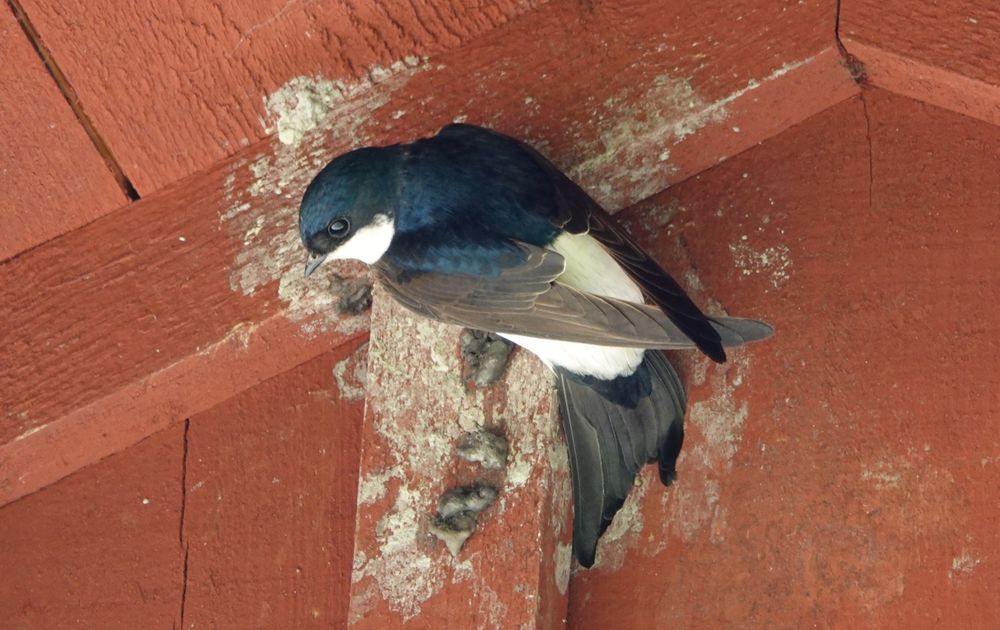 Onze tijdelijke cottage wordt binnenkort door meerderen bewoond, de werkzaamheden voor de woning uitbreiding zijn al in volle gang. Wat een werkersmentaliteit, samenwerking en vakmanschap leggen deze zwaluwen aan de dag! Even verder is de modderpoel waar ze met vele anderen de modder verzamelen om hun bouwwerken te kunnen maken. Een interessant en imposant gezicht.