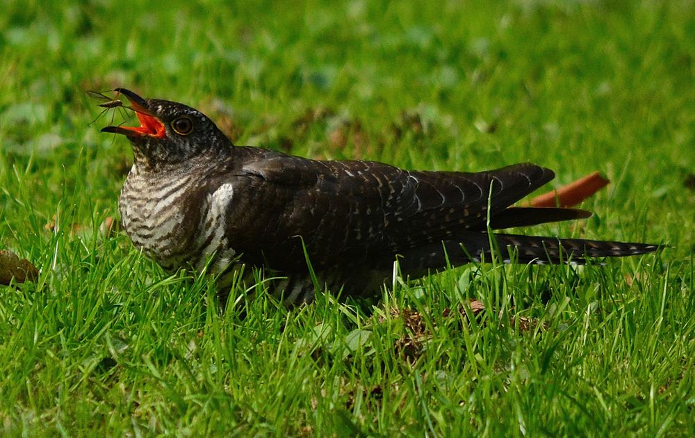 Deze jonge koekoek eet zijn buikje helemaal vol om straks met zijn ouders in het verre Afrika herenigd te worden...