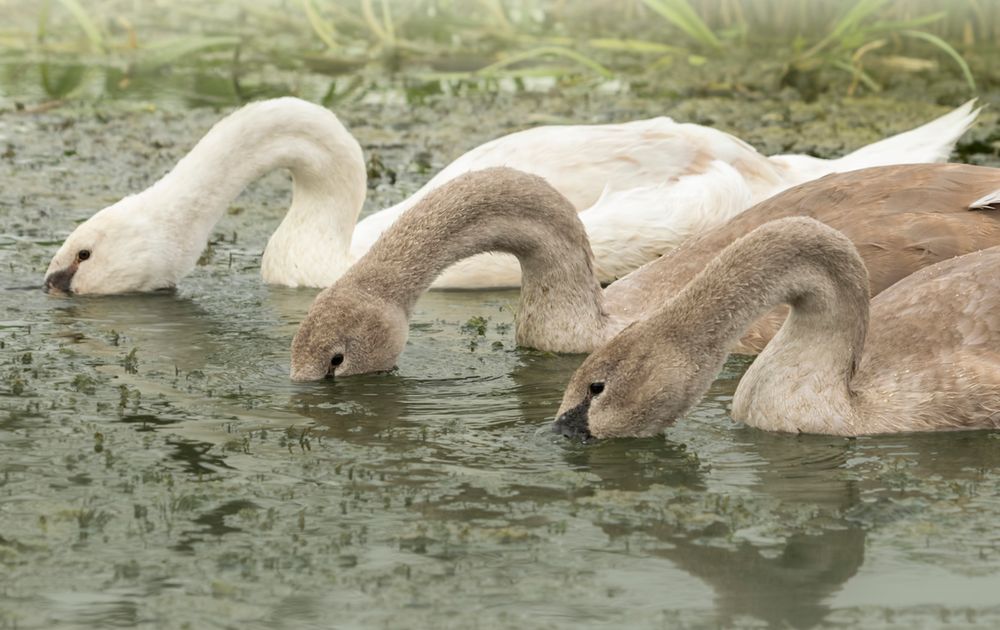 De 3 jongen van het Zwanenpaar bij ons in de buurt beginnen echt al groot te worden. Ze zijn gezellig met zijn drieën aan het grondelen naar voedsel en gaan steeds meer hun eigen weg. Leuk om ze zo op te zien groeien!
