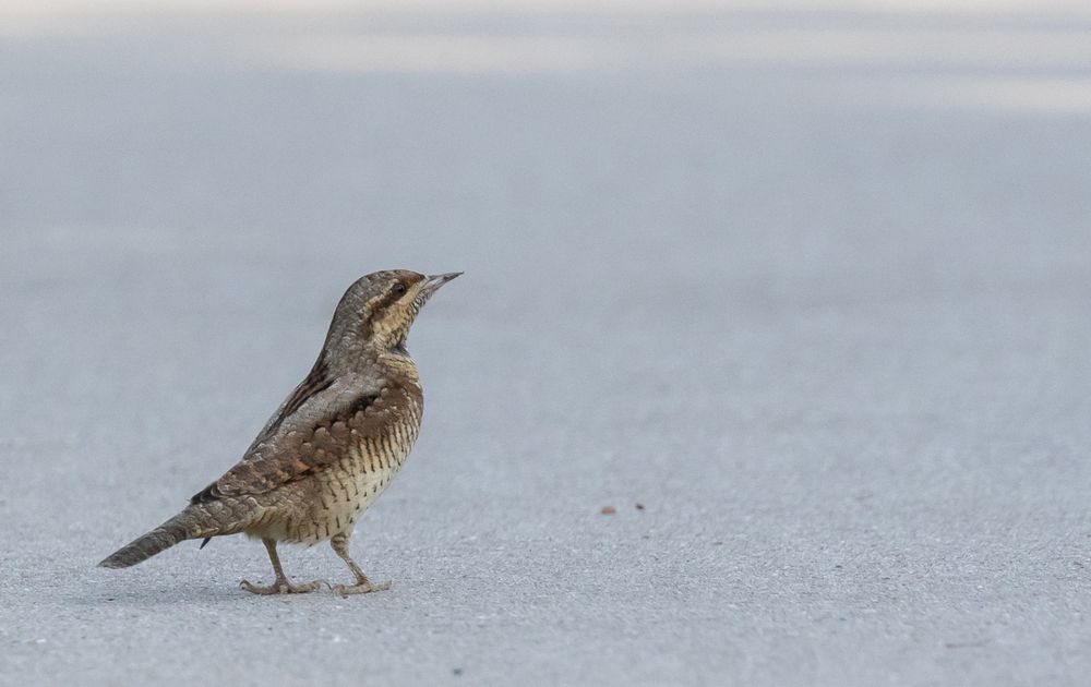 Deze draaihals, vermoedelijk onderweg van Scandinavie naar het warmere zuiden, maakte een tussenstop aan de zuidkant van de Oostvaardersplassen. Hier deed hij zich tegoed aan de vele mieren tussen de betonplaten van het fietspad. Veel vogelaars en fotografen hebben deze bijzonder spechtensoort daar de afgelopen dagen kunnen bewonderen.