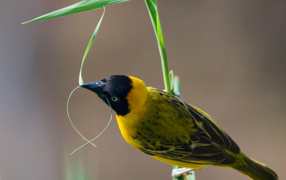 Prachtig om te zien hoe deze wevers de blaadjes met hun snavel snijden om hun nest te bouwen.