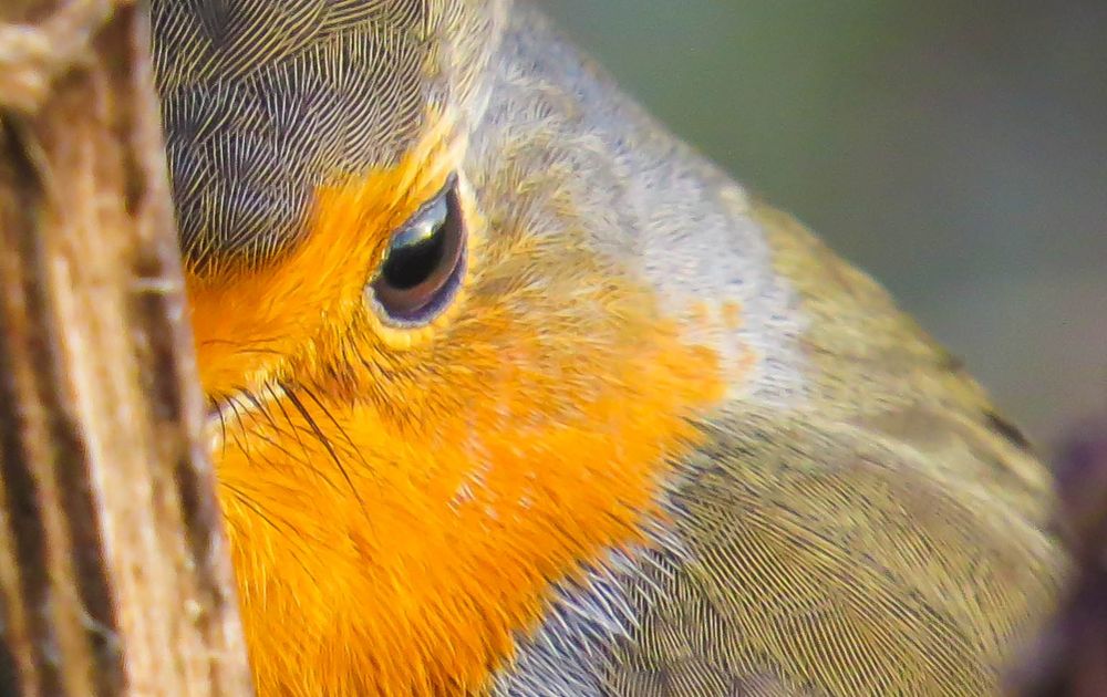 Roodborst zat achter een stengel kiekeboe te spelen:)