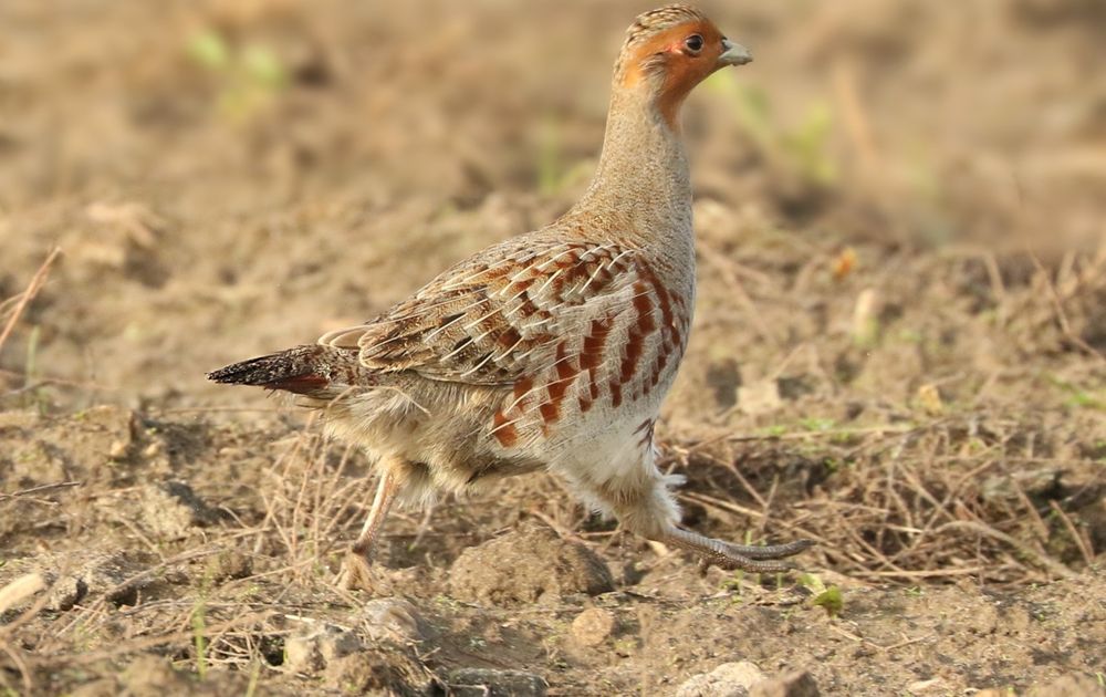 Een groepje van 11 patrijzen kwamen plotseling voorbij toen m'n auto aan de kant van een akker geparkeerd stond.Gelukkig had ik de camera bij de hand!