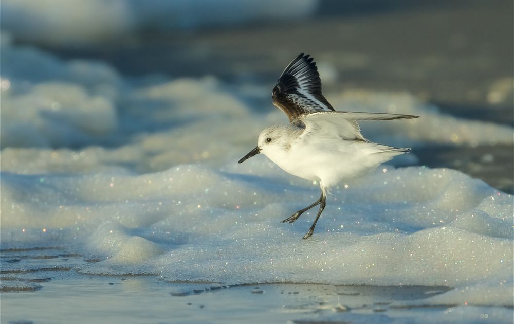 In het najaar zijn deze hyperactieve vogeltjes volop te vinden aan het strand. Bij deze foto vind ik de achtergrond (het zeeschuim) een toegevoegde waarde.