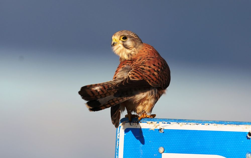 Deze prachtige Torenvalk zat zich lekker te wassen in de ochtendzon. Hij bleef heel even zitten, zodat ik vanuit de auto hem prachtig kon fotograferen in de zon.