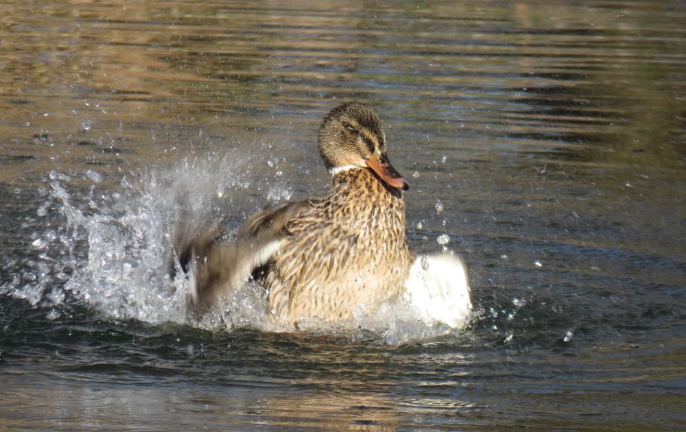 Dit vrouwtje was zich aan het badderen in een winters zonnetje.