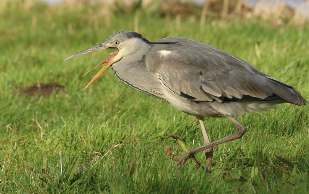 De Reiger was aan het gapen en zo kon je goed z'n tong zien.