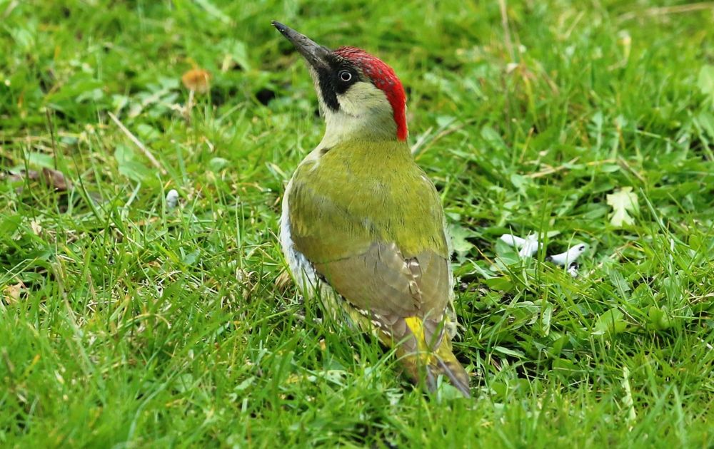 Deze mooie Groene Specht scharrelt zijn kostje bij elkaar in het groene Polderlandschap. Laag in het land heb je geen last van de harde wind!