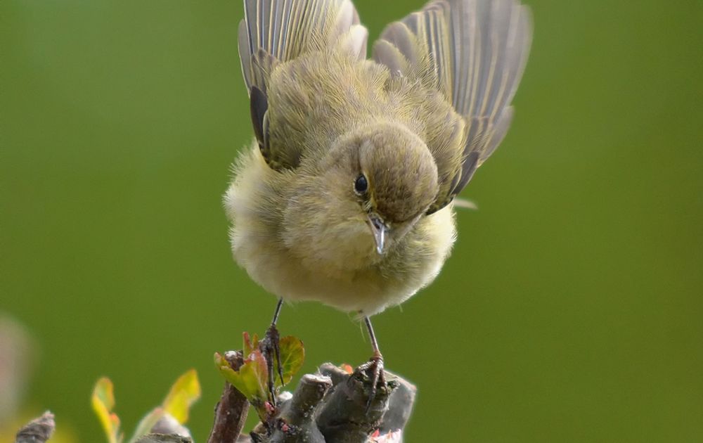 Deze tjiftjaf is deze lente een vaste bewoner op onze volkstuin.