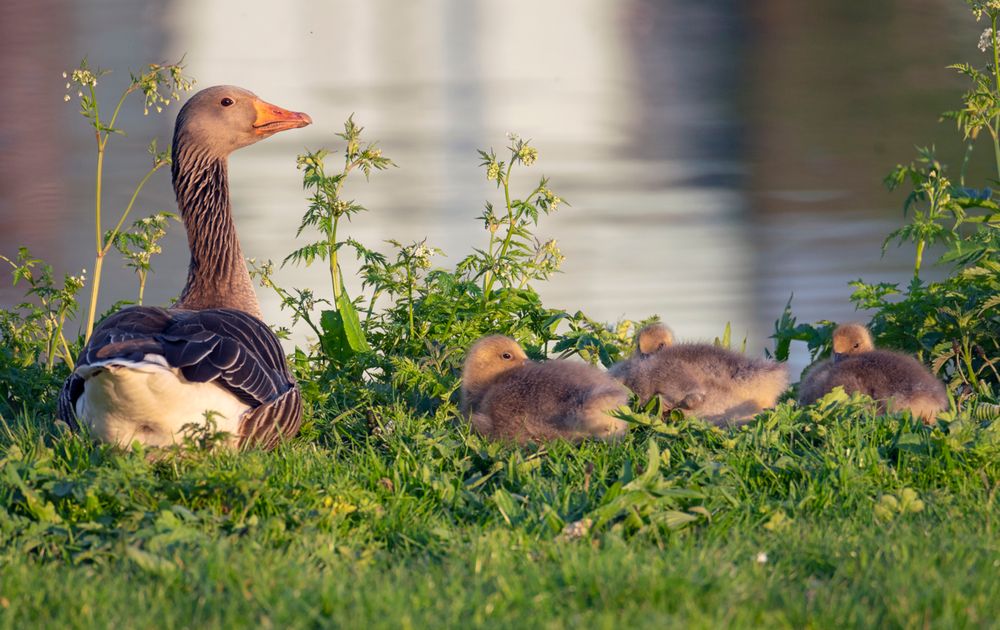 Bij de jachthaven was deze moeder alert terwijl haar kroost lag te rusten