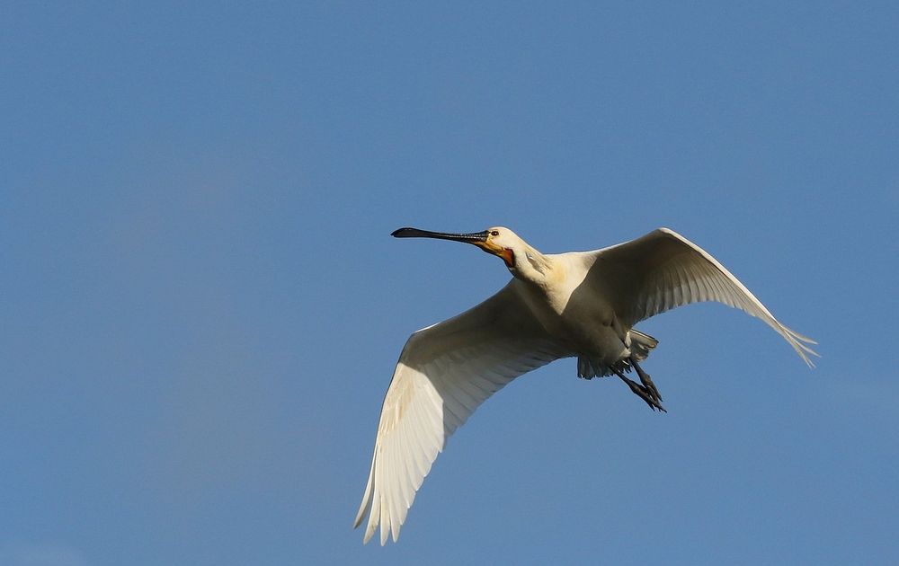 Van uit een kijkhut deze Lepelaar in de vlucht vastgelegd
