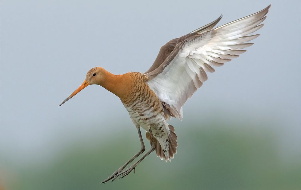 Hier een landing van een Grutto nog voor de paal in zicht is. Prachtige weidevogels zijn het.