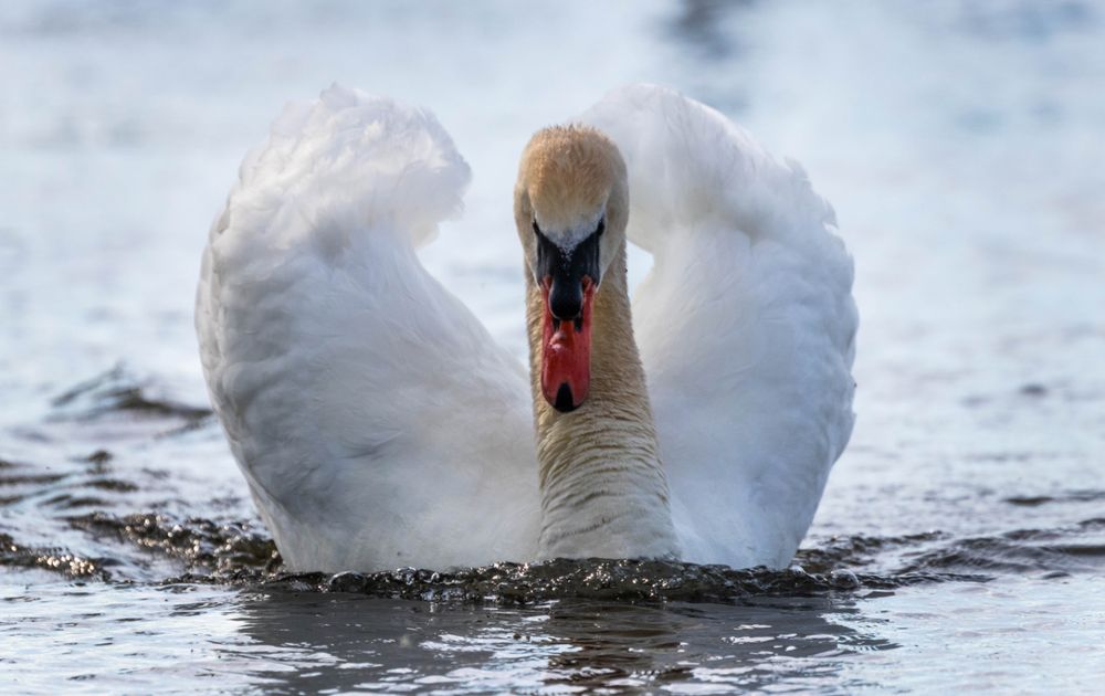 Deze knobbelzwaan verdedigde zijn kroost fanatiek tegen o.a. een meerkoet en wat eenden. Op de foto kwam hij zelfs van grote afstand aanzwemmen om een Canadese gans te verjagen.
