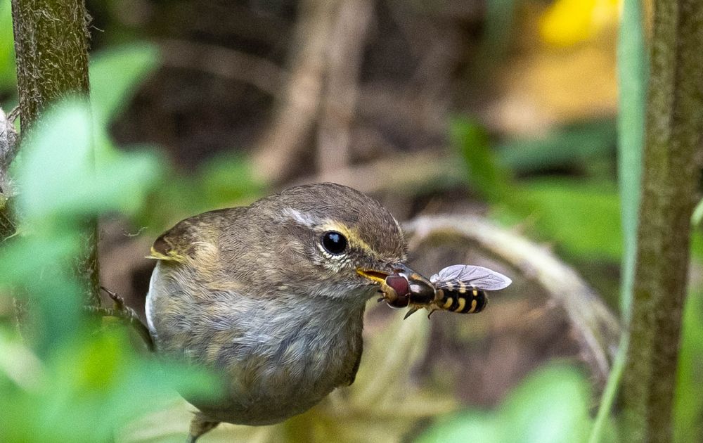 Tjiftjaf met voer voor jongen