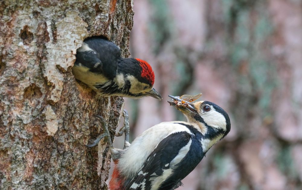 Foto genomen met telelens vanuit camouflagetent, om het spechtennest niet te verstoren.
