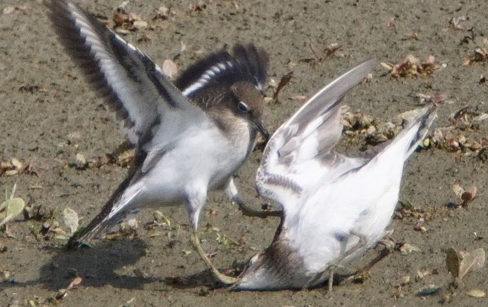 Deze Twee waren om elkaar heen aan het draaien en vechten op gegeven moment ging de een op de snavel/ kop van de ander staan
