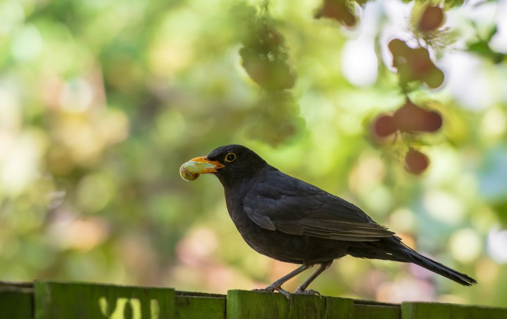 Deze merel is vaak in onze tuin te vinden, hij brengt al m'n druiven naar zn jonkie. Zelf eet hij er ook lekker van.Regelmatig zitten ze ook samen in onze tuin. Voor hij vertrekt zit hij even een paar tellen op de schutting en kijkt dan nog even richting mij zo van ik heb er weer hoor.