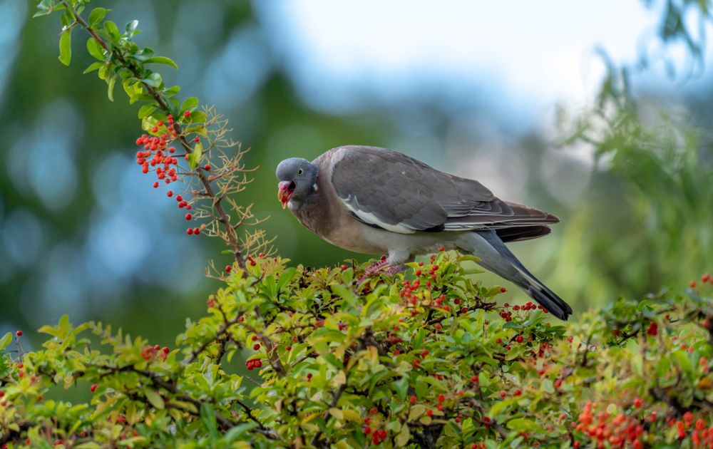 Duiven hebben de bijnaam vliegende rat, maar deze houtduif heeft toch een stuk betere smaak dan de meeste ratten.