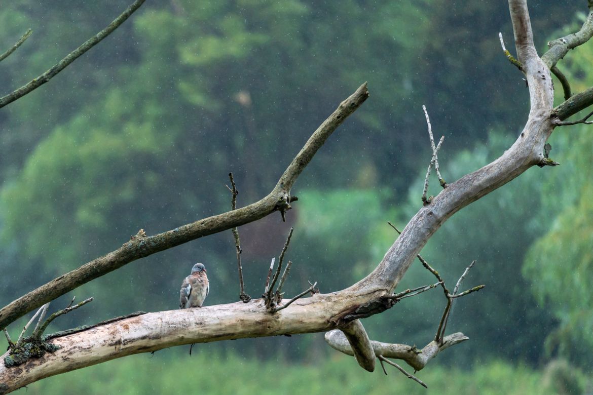 Eén van de eerste dagen van de herfst en het weer is gelijk regenachtig en triest. Dit beeld illustreert de intrede van het najaar perfect. Kouder en natter, deze houtduif gaat niet schuilen maar zit de bui maar uit. @brvfilms_photography