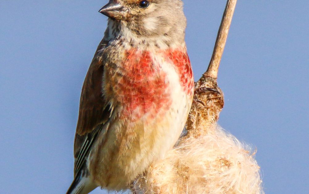 Maar eens een foto van een kneu man. Die zie ik hier niet veel en is toch ook een hele mooie vogel.