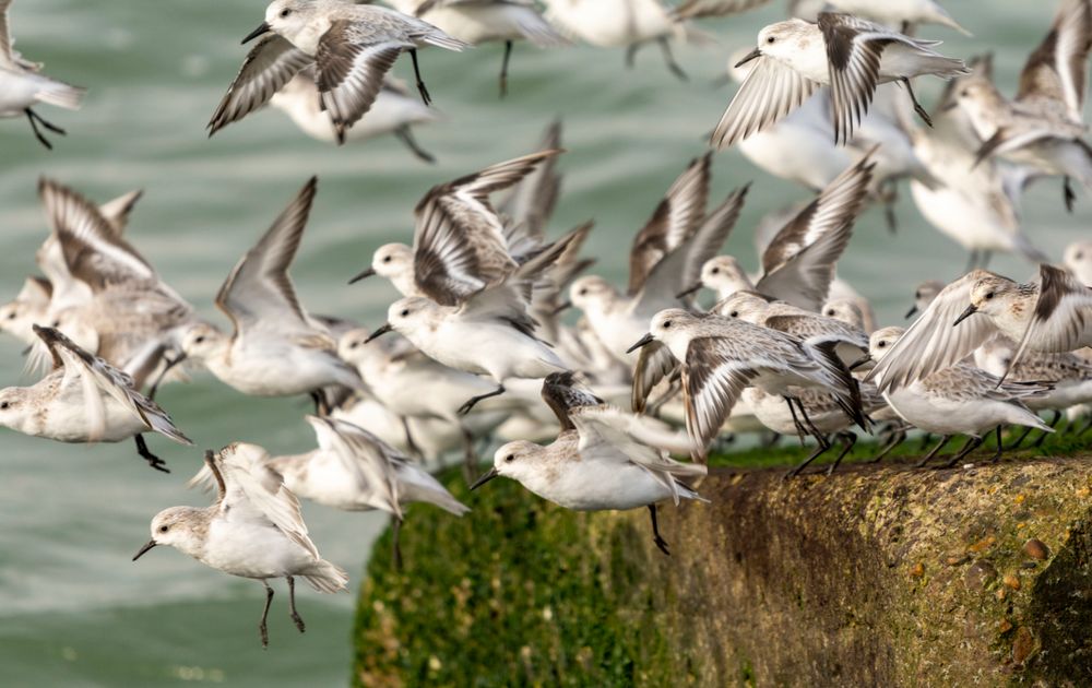 Grote groep drieteenstrandlopers die heerlijk aan t slapen waren maar er kwamen er steeds mee bij en ontstond er wat rumoer...wat resulteerde in een hoop gevlieg en gefladder.