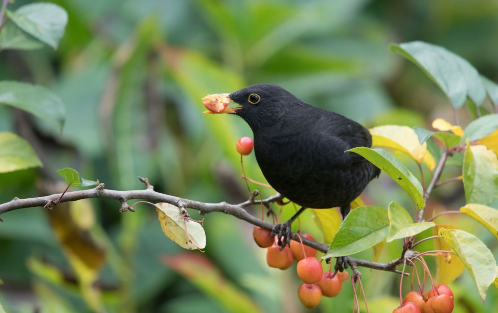 Deze merel komt elke dag wat appeltjes eten , ondertussen word ik wel in de gaten gehouden.