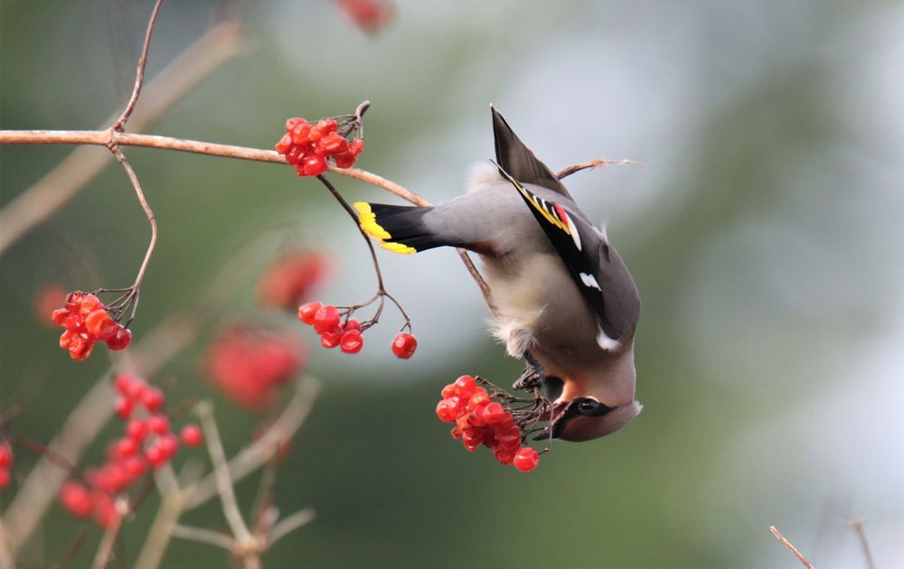 Pestvogel op Gelders roos, toch een van z'n lievelings besjes.
